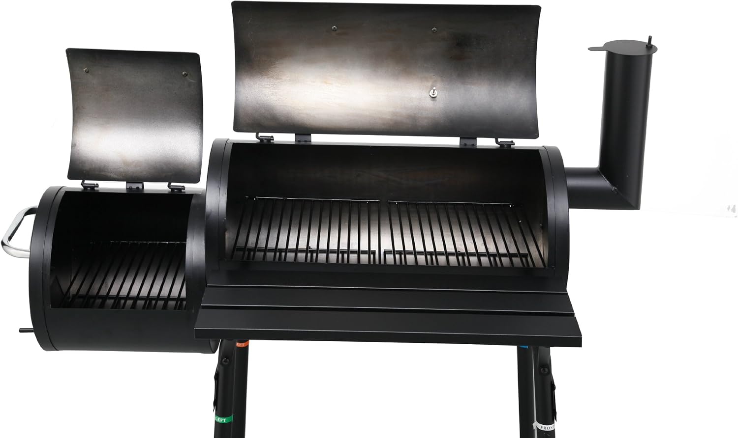 Magnífica barbacoa con ahumador lateral que te permite cocinar con fuego indirecto y conseguir un efecto parecido a un horno. Como ves también puedes usarla como barbacoa tradicional, pero además tiene la ventaja de este sistema.