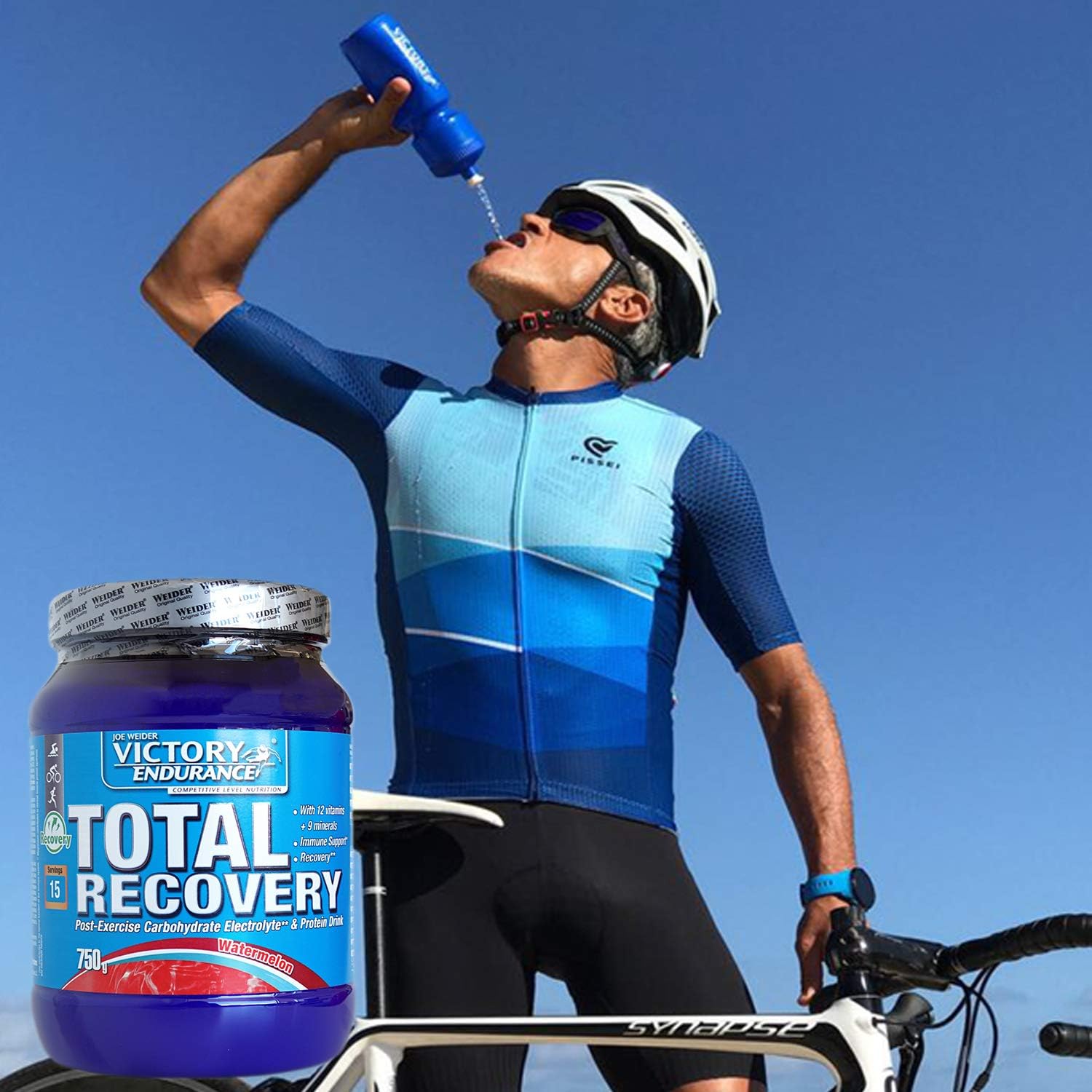 Producto especialmente indicado para deportistas, ayuda a recuperar la energía después de una actividad intensa o un entrenamiento. Tiene sabor a sandía, lo ideal es mezclarlo con agua o zumo y está compuesto por: Dextrosa, aislado de proteína de suero de leche, L-Glutamina, proteína de suero de leche hidrolizada, acidulante (ácido cítrico), aroma (aroma de sandía), hidróxido de magnesio, péptidos de glutamina, L-Leucina, L-Valina, L-Isoleucina, edulcorante (sucralosa), cloruro de sodio, ácido l-ascórbico (vitamina C), pirofosfato de hierro (III), D-alfa-tocoferol acetato (vitamina E), nicotinamida (niacina), oxido de zinc, Dpantotenato cálcico (ácido pantoténico), piridoxina cl.