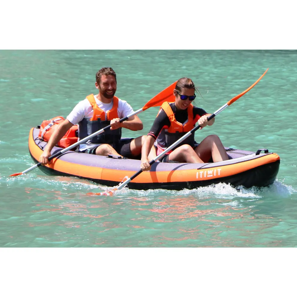 Kayak de muy buena calidad, bastante estable y que desliza fácilmente, incluso con pequeñas olas. Recomendado para lagos, ríos y mar. Es insumergible y con autovaciado