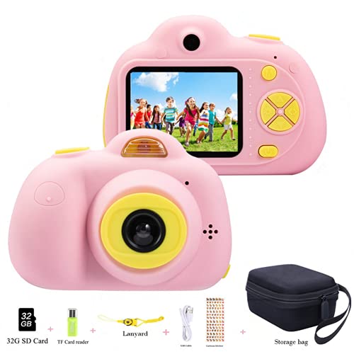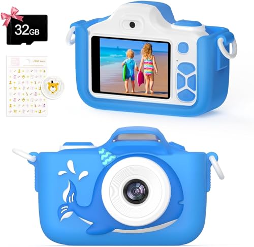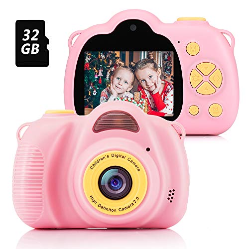 Fede Cámara para Niños con Tarjeta TF 32GB,Cámara Digitale Selfie para Niños,Video cámara Infantil con Pantalla de 2.0 Pulgadas,HD 8MP/1080P Doble Objetivo,a Prueba de Golpes,Carcasa de Silicona