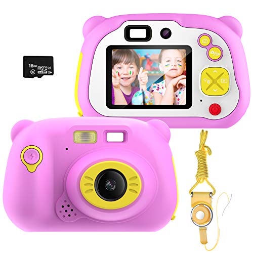 Cámara para Niños con Tarjeta TF,Cámara Digitale Selfie para Niños,Video cámara Infantil con Pantalla de 2 Pulgadas,HD 1200 MP/1080P Doble Objetivo,a Prueba de Golpes,Carcasa de Silicona(Rosa)