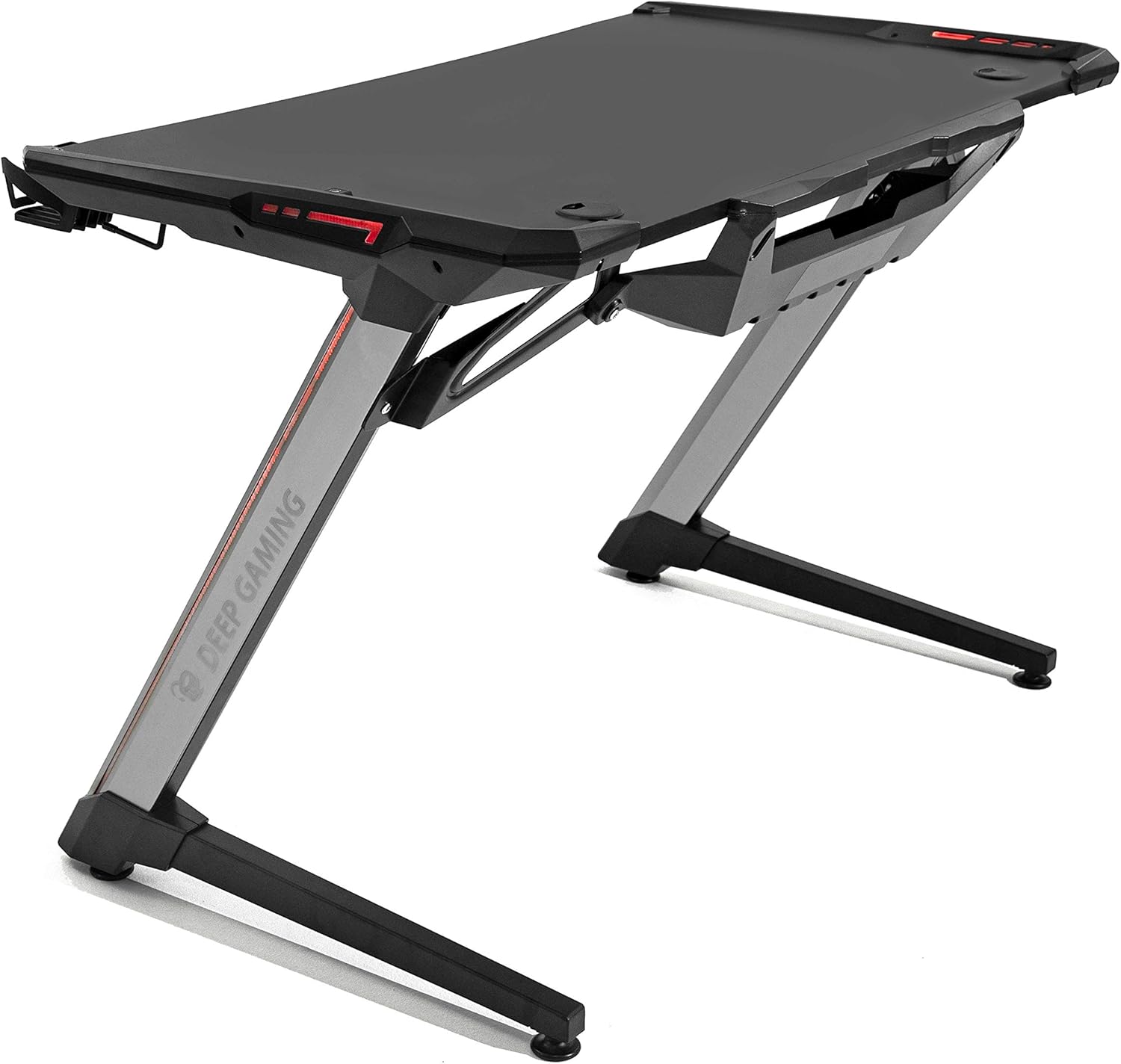 Como hemos comentado la mesa de escritorio gaming Eureka Z1-S tiene una espectacular forma de Z, es muy estable y robusta y sus detalles la convierten en una de las mesas gaming más vendidas de Amazon, además de contar con una valoración de sobresaliente, pues acumula cerca de 1.000 opiniones y una puntuación de 5 estrellas.